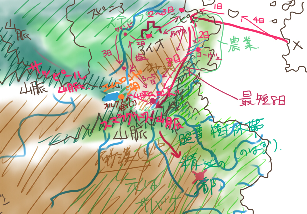 題名からも予測できるかと思いますが、次は砂漠です。砂漠~熱帯です。暑い。おまえ、冬にそれ書くつもりか。いや、月の杖世界も今から冬なんだけどさ!